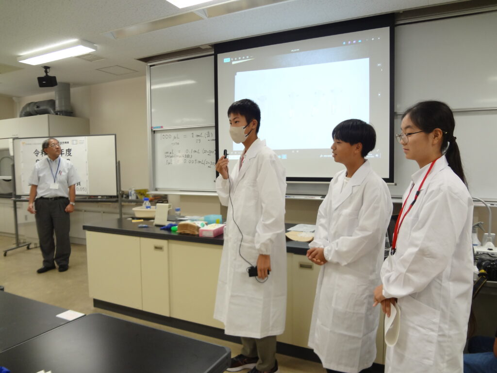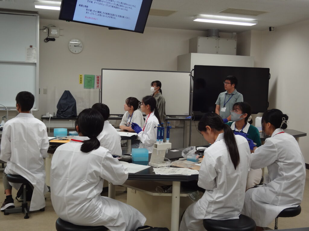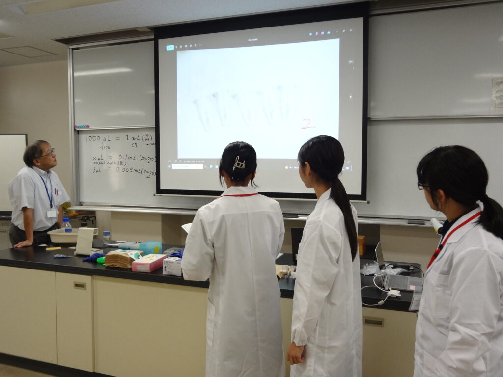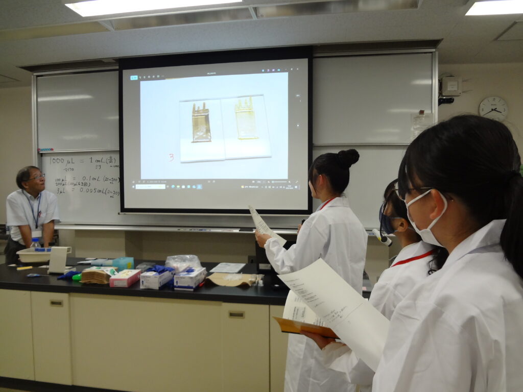 先週のオリエンテーションに引き続き早速実習講義が始まりました。初回の講義は「生命活動とタンパク質」で理学部の島﨑洋次准教授が講義を担当されました。中学生(早期育成型受講生)と高校生(第一段階受講生)が一緒の講義は今年で2年目に入りました。展開学習は基本的に、座学、実験、グループディスカッション、プレゼンテーションで構成されています。予習課題、復習課題(レポート)にも取り組んで専門的な知識をどんどん吸収してきましょう!