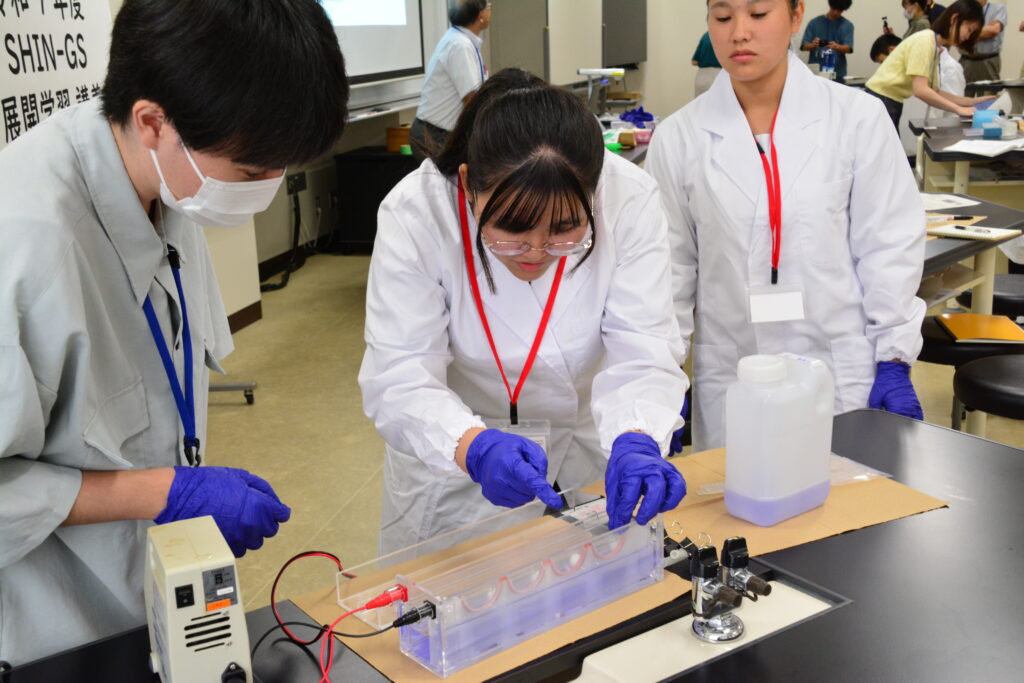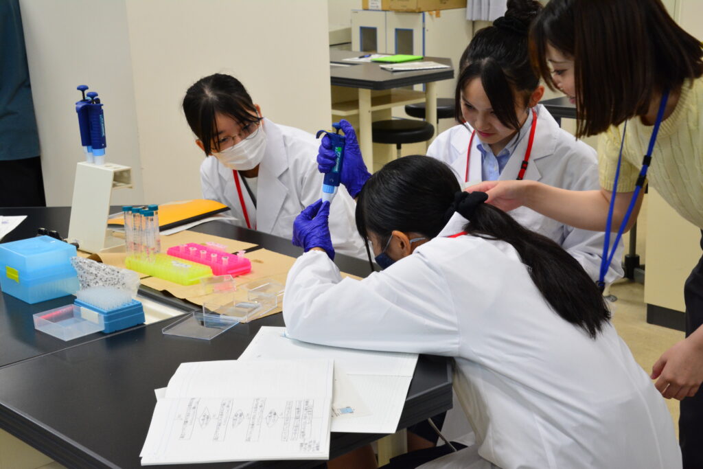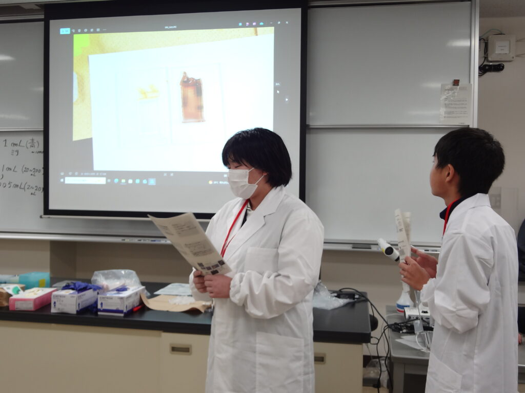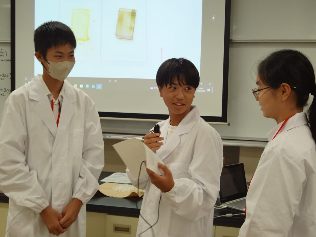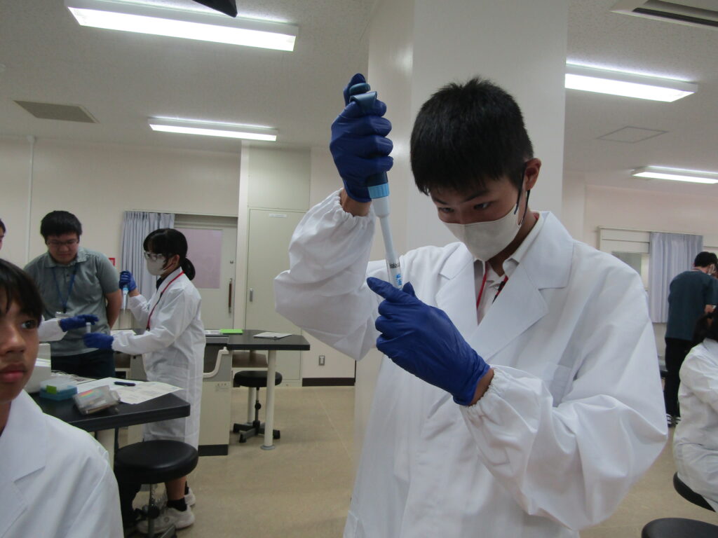先週のオリエンテーションに引き続き早速実習講義が始まりました。初回の講義は「生命活動とタンパク質」で理学部の島﨑洋次准教授が講義を担当されました。中学生(早期育成型受講生)と高校生(第一段階受講生)が一緒の講義は今年で2年目に入りました。展開学習は基本的に、座学、実験、グループディスカッション、プレゼンテーションで構成されています。予習課題、復習課題(レポート)にも取り組んで専門的な知識をどんどん吸収してきましょう!