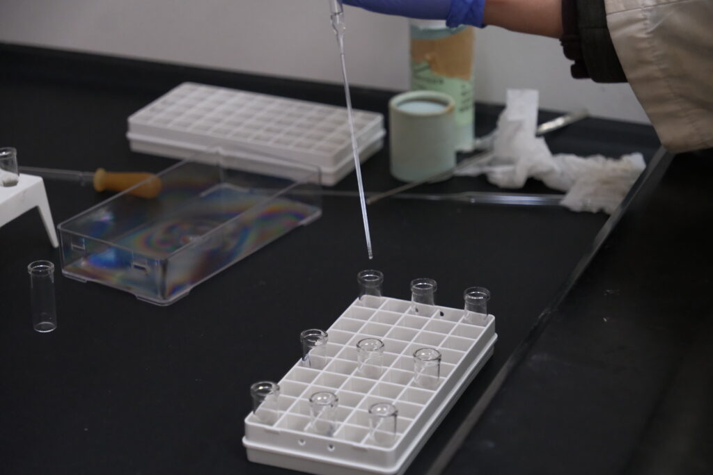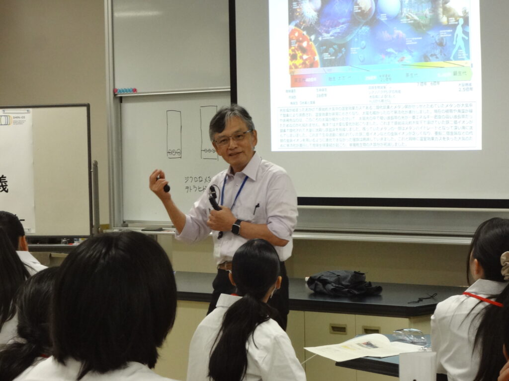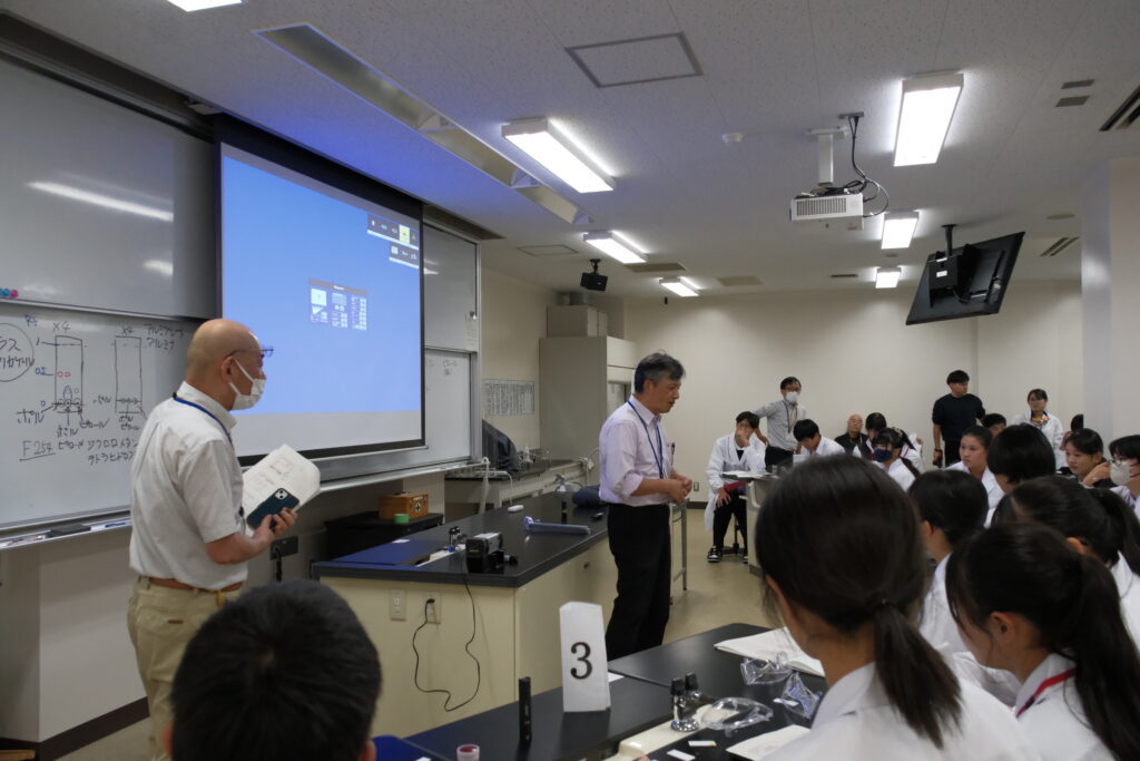 愛媛大学次世代人材育成拠点・宇野英満拠点長(専門:有機化学)の講義を開催しました。「有機化学」を取り扱う講義ということもあり、宇野先生をはじめ研究室の大学院生(お1人は愛媛大学GSC修了生)にしっかりと事前準備をしていただき無事講義を終えることができました。座学の中では「生体中に存在する代表的な色素」「地球史」のお話から「ポルフィリン類の合成」などをお話しいただきました。講義を通じて有機化学が身近になった方もいるかもしれません。