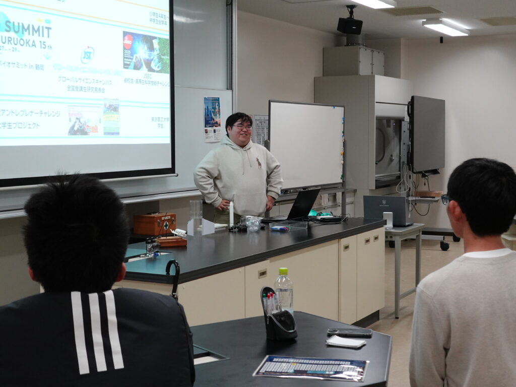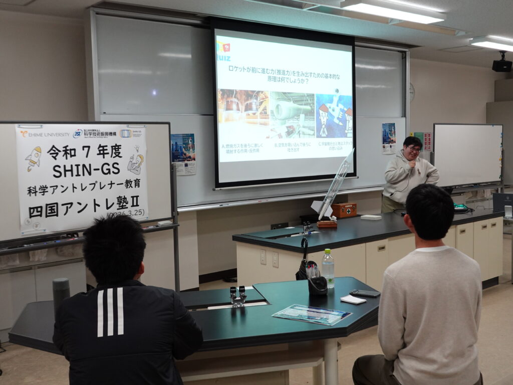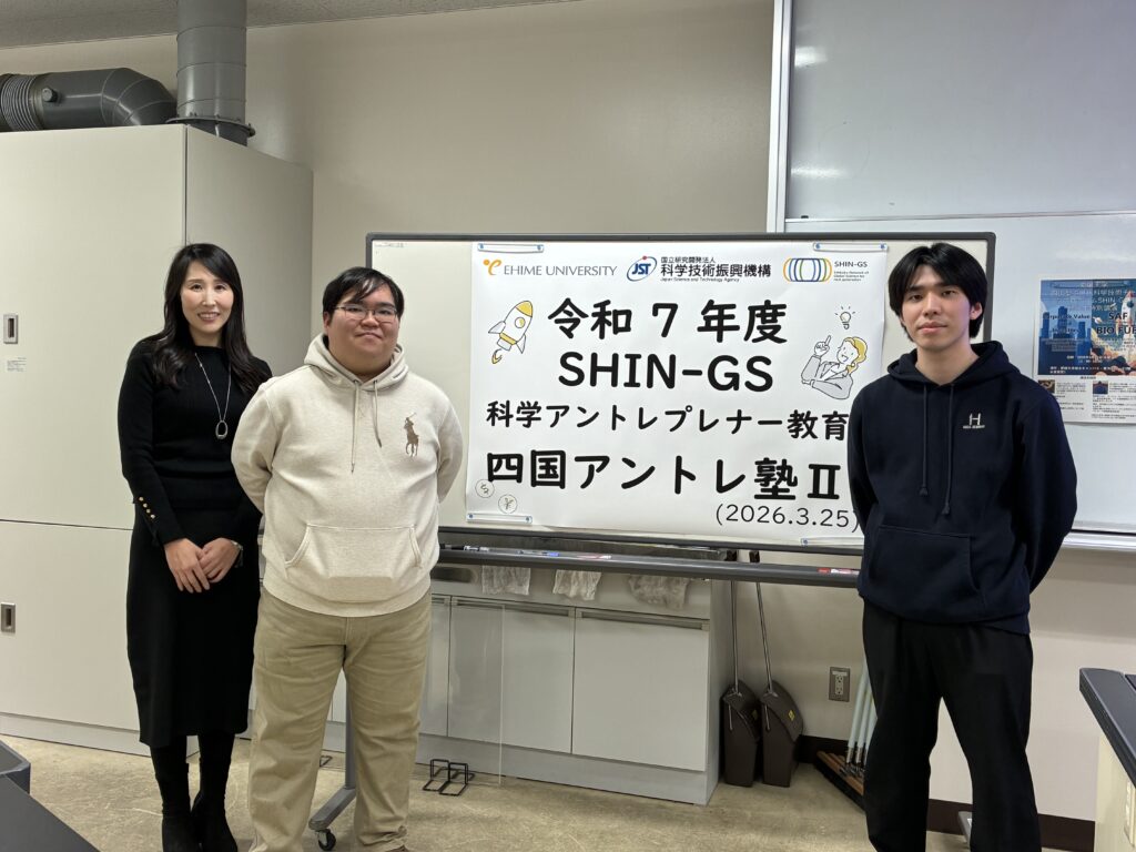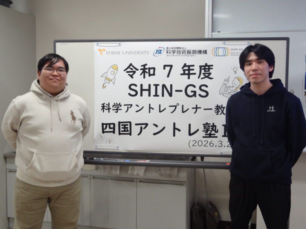 今回はグローバルサイエンス時代の受講生である修了生が本講座の講師を担当していただきました。当時高校生だった彼らがこのような形で愛媛大学に凱旋してくれたことを誇りに思います。