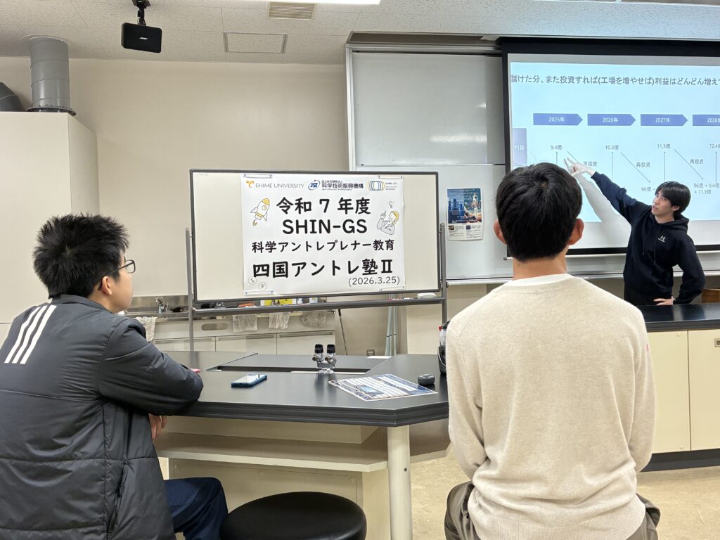 SHIN-GSでは毎年、科学アントレプレナー教育の一環として「四国アントレ塾Ⅰ」と「四国アントレ塾Ⅱ」を開講しています。